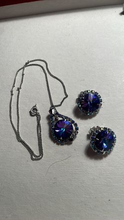 Vintage jewelry set necklace & earring Silver w Purple & auraura borealis crystals$120Las Vegas, NV