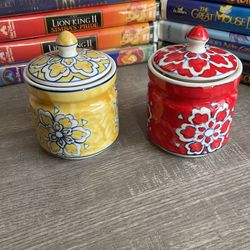 Pier One Spice Jar Tuscany farmhouse cottage shabby india blue yellow trinket & Red & Blue Trinket$35Channelview, TX