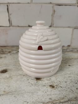 Jeannette Glass Company Shell Pink Milk Glass Honey Pot Mid Century JEANNETTE GLASS SHELL PINK BEEHIVE HONEY JAR NOTCHED COVER No markings on bottom -$25Fort Myers, FL