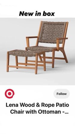 Lena wood & Rope patio chair with ottoman ✨ ✨CONDITION - NEW ✨ ✨Cash / Zelle$100Aurora, IL