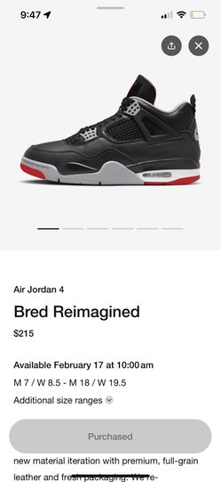 Air Jordan 4 Bred Size 10.5 $320Palisades Park, NJ