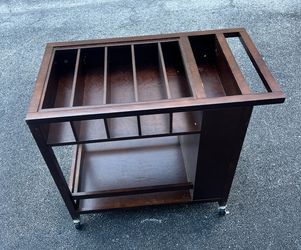 Mid Century 2 Tiered solid wood Cocktail Bar Cart with wine bottle holder at the side $100Fleming Island, FL