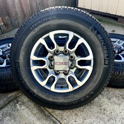 18” GMC Sierra 2500 OEM Duramax Wheels on 275/70/18 Michelin LTX A/T2 80% Tread$1,000Lodi, CA