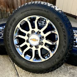 New 2026 Chevy Silverado 2500 20” OEM Chrome Z71 Duramax Wheels on 275/65R20 Goodyear TrailRunner AT 99% Tread$2,200Lodi, CA