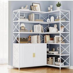 Corner Bookshelf 6 Tier, L Shaped Bookcase with Rattan Storage Cabinet, Wooden Corner Bookcase with Open Shelves and Metal Frame$189San Jose, CA