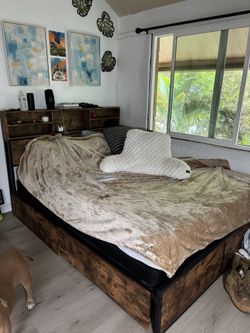 queen size bed frame with pull out drawers and outlet attached $275Kaneohe, HI
