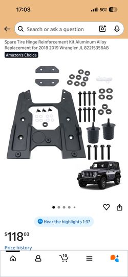 Spare Tire Hinge Reinforcement Kit Aluminum Alloy Replacement for 2018 2019 Wrangler JL$80Inglewood, CA