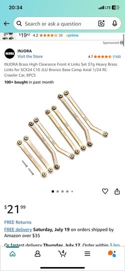 INJORA Brass High Clearance Front 4 Links Set 37g Heavy Brass Links for SCX24 C10 JLU Bronco Base Camp Axial 1/24 RC Crawler Car,$15Inglewood, CA