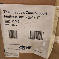 Drive Medical 5 Zone Therapeutic Support Mattress, 36”W x 80”L x 6”H, 15019 -New$200Miami, FL