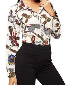 Long Sleeve Blouse Casual Chain Print Top/Shirt Size XL$30Riverside, CA