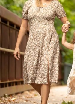 Women's Floral Summer Casual Dress Square Neck Puff Sleeve Boho Midi Dresses Ruched Bust High Waist Split Long Dress - Size XL$55Riverside, CA