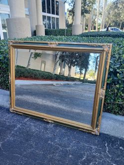 Antique or Vintage Gold And Forest Green Ornate Crackle Frame Hanging Wall Mirror 43.25" W X 1.5" D X 31.25" H. $220West Palm Beach, FL
