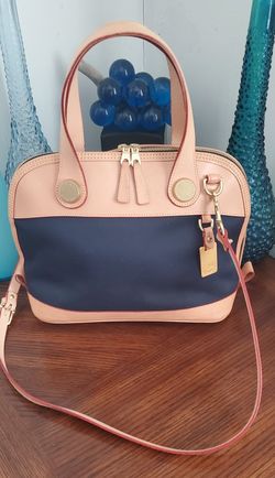 Dooney & Bourke Cabriolet Navy Canvas Tan Leather Crossbody Satchel $50Yuma, AZ