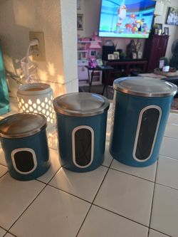 Set Of Three Turquoise Metal Canisters$8Banning, CA