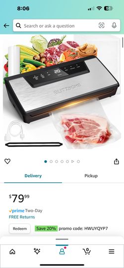 BLITZHOME Vacuum Sealer Machine, 5 Easy Modes for Dry/Moist Food Storage/Sous Vide, Built-in Cutter/Storage, Visual Seal-Time, Automatic Food Sealer w$50Houston, TX