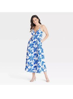 A Womens Ruched Midi - Boho Floral Dress - Blue Flowers - M$15Claremont, CA