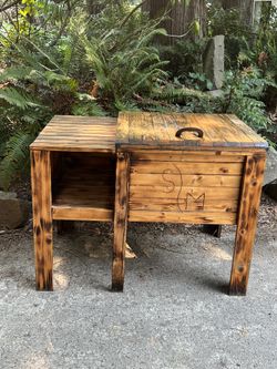 Stained Wood Cooler Table With Horse Shoe Handles$160Woodinville, WA