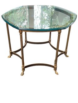 Mid Century Labarge Brass w Original Glass top Side Table Hoof Footed Octagonal$100Woodinville, WA