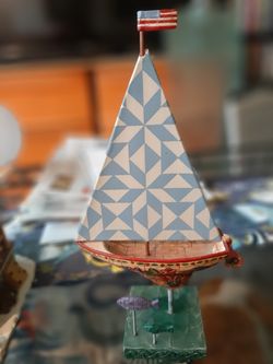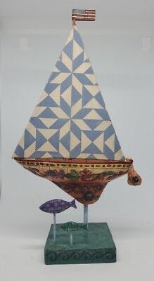 Jim Shore Shorelights Cutting Waves 2004 Sailboat Carved Fish Figurine US Flag$45Virginia Beach, VA