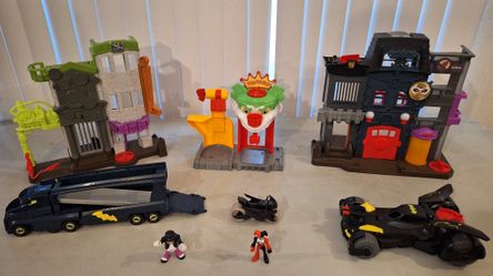DC batman super friends playset and joker and Harley Quinn figures and car toy $40San Diego, CA