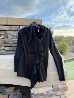 Free People Black Sweatshirt Jacket Asymmetrical Ruffle Zip Front Black French Terry women size medium $30Scottsdale, AZ