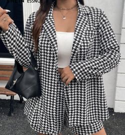 Plus Size Houndstooth Lapel Jacket & Shorts 2pcs Suit Set$25Stockton, CA