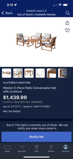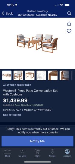 Weston 5-Piece Patio Conversation Set With Cushions$800Hialeah Gardens, FL