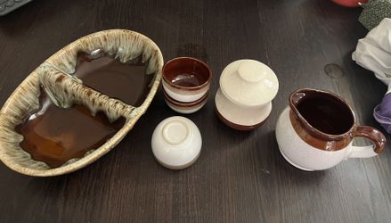 Vintage MCM Brown Drip Glaze Divided Bowl Lot $30North Bethesda, MD