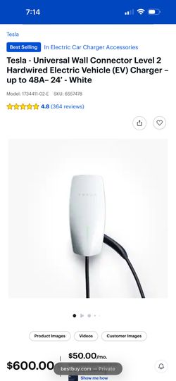 Tesla - Universal Wall Connector Level 2 Hardwired Electric Vehicle (EV) Charger – up to 48A– 24’ - White$480Hialeah, FL