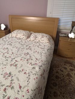 Beautiful wood bedroom set queen bed with nightstands and dresser$350Glendale, CA