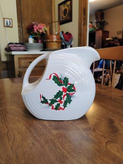 Vintage Fiesta large white pitcher with holly design 7" x 7.5"$49Richardson, TX