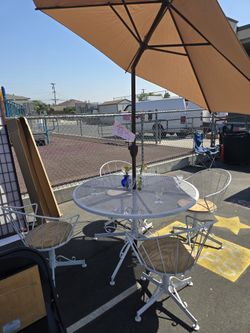 White Metal Patio SET With Swivel Chairs And New Umbrela$250Los Angeles, CA