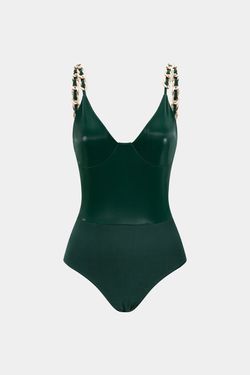 Large Micas Faux Leather Bodysuit & pencil Rushed Skirt In Jade$60Addison, TX