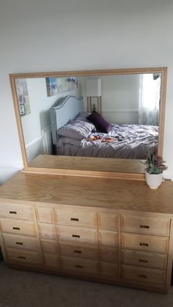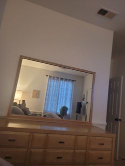 Vintage Blonde Wood Dresser And Mirror $300Temecula, CA