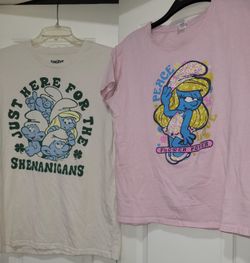 2 smurfs shirts Adult M. Junior L Smurfette $5Dallas, TX