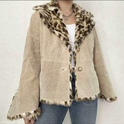 Vintage Y2K Genuine Leather Coat Fur Jacket!$65San Leon, TX