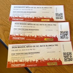 Iron Maiden Concert Tickets $30Loma Linda, CA