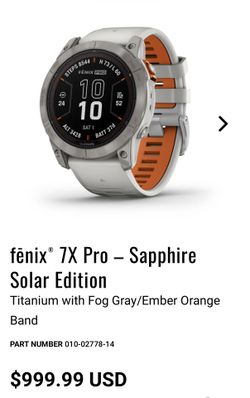 Garmin Fenix 7X Pro Sapphire Solar$475Bellevue, WA