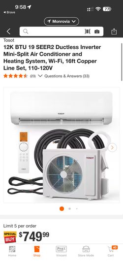 Tosot 19 Seer Minisplit AC$500Monrovia, CA