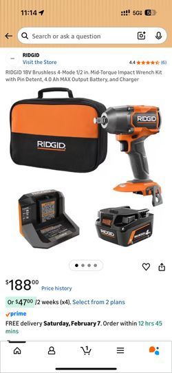18v Ridgid 1/2 Impact Wrench Combo Kit $150Monrovia, CA