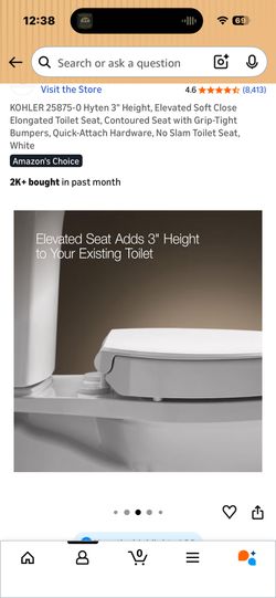 Kohler 3” Extension ADA Toilet Seat 18” $45La Mesa, CA