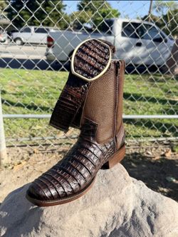 Botas vaqueras café con cinto para hombres$224Compton, CA