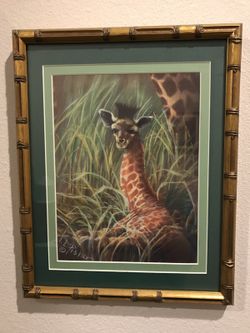 Beautiful Baby Giraffe in Grass Print green mats gold bamboo style gilded frame$40Bothell, WA