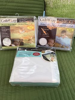Bundle White Breathable Baby Mesh Crib Bumper and CribWrap by Trend Lab Crib Rail Covers Fleece$50Bothell, WA