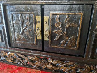 antique Chinese carved rosewood sideboard or buffet, also known as a mule chest.