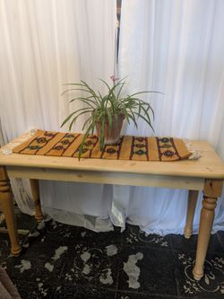 Very nice Blonde wood and tree table measures 27 and 1/2 in high 4 ft. Long 18 in deep$100Albuquerque, NM