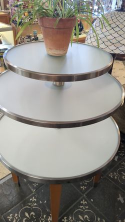 three-tiered round display table, widest part measures 3 ft in diameter 51 and 1/2 in tall$185Albuquerque, NM
