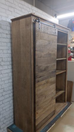 Amazing Farmhouse Sliding Barn Door Cabinet comes with two extra shelves. measures 74 in tall 50 52 in Long 17 in deep. Was kept in$800Albuquerque, NM