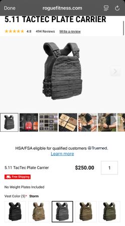 5.11 TacTec Plate Carrier Vest β Storm Gray β 20 lbs Included$225Hanford, CA