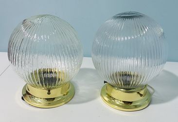 Pair Gold Flushmount Ceiling Lights with Clear Ribbed Glass Bowls in Excellent Condition!$10Ellenwood, GA
